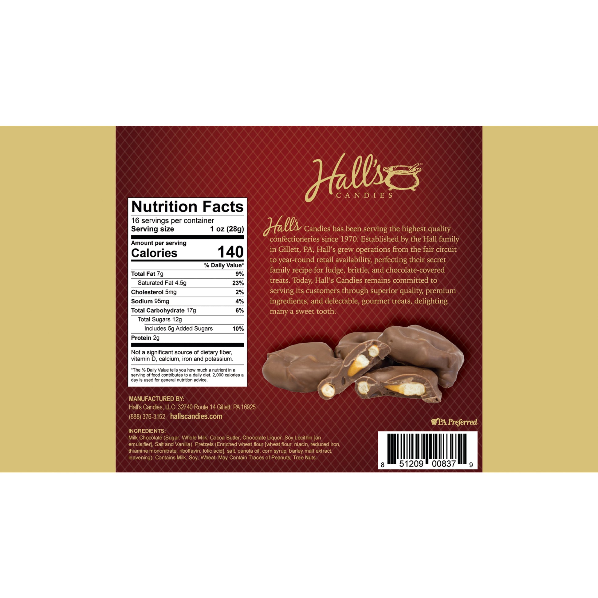 Hall's gourmet Milk Chocolate-Covered Pretzels are made with the finest ingredients and are drenched in creamy milk chocolate!